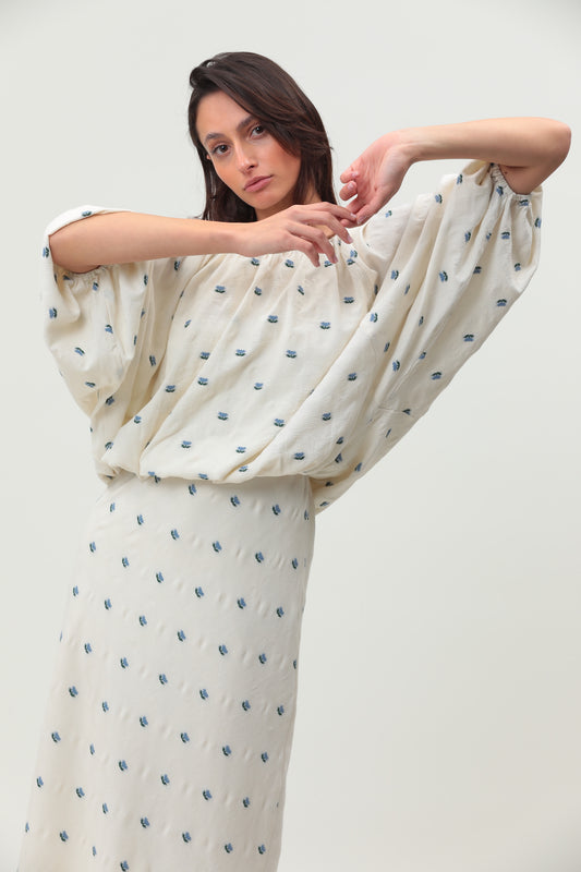Lino Top - Embroidered White
