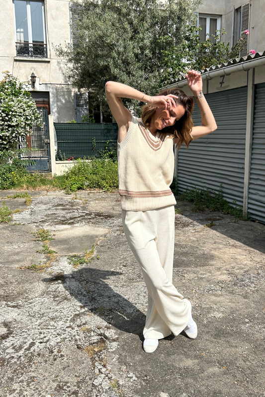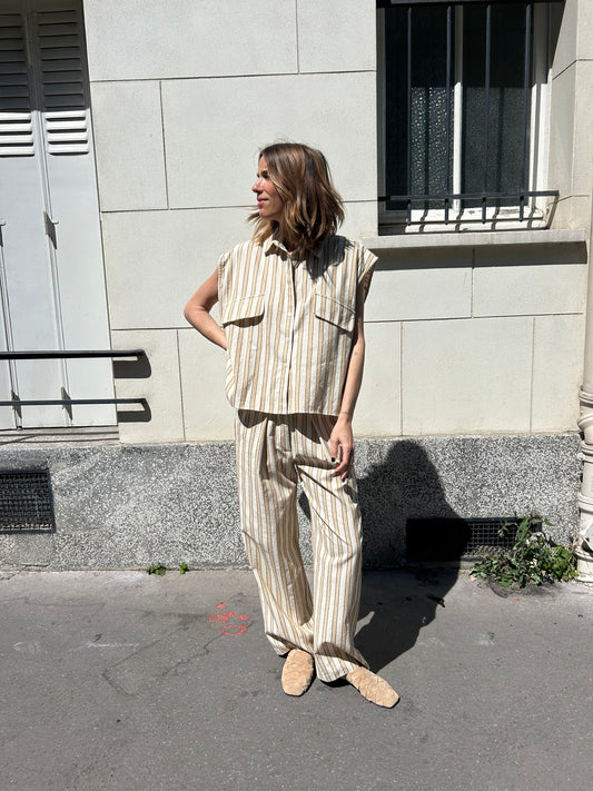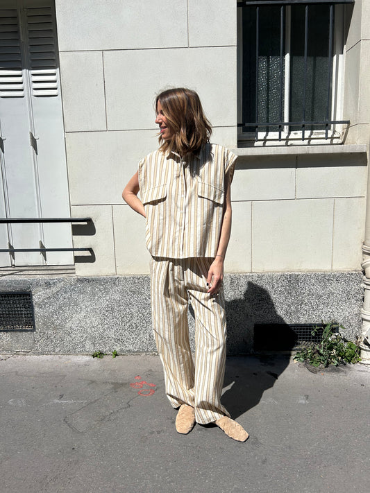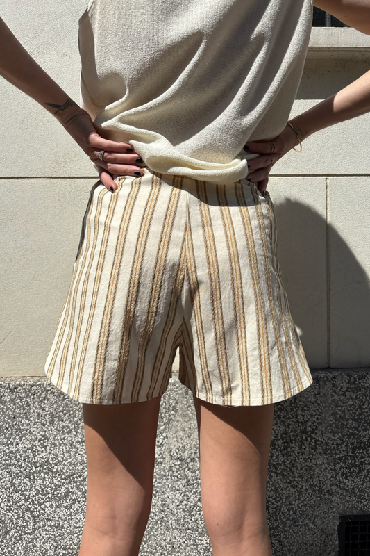 Sleeveless Polo Shirt - Yellow with Ecru Stripes