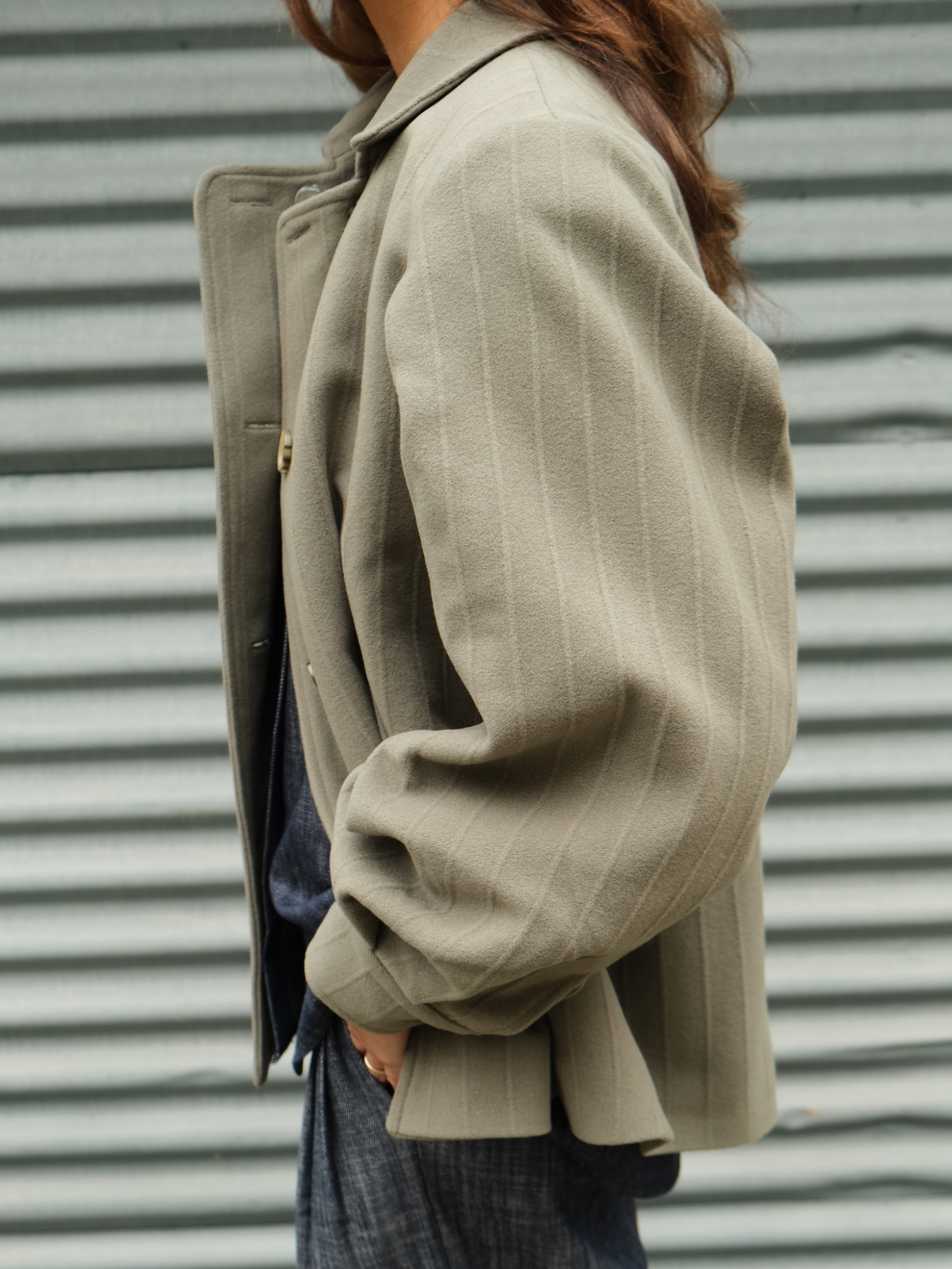 SEGUR, corte recto ligeramente trapecio, manga larga abullonada, dos bolsillos laterales, doble abotonadura y tejido de lana y cashmere en color caqui para abrigarte durante todo el invierno. Para combinar con el conjunto Paola y Adèle o los jeans Marceau para un look casual y casi todo tu armario.