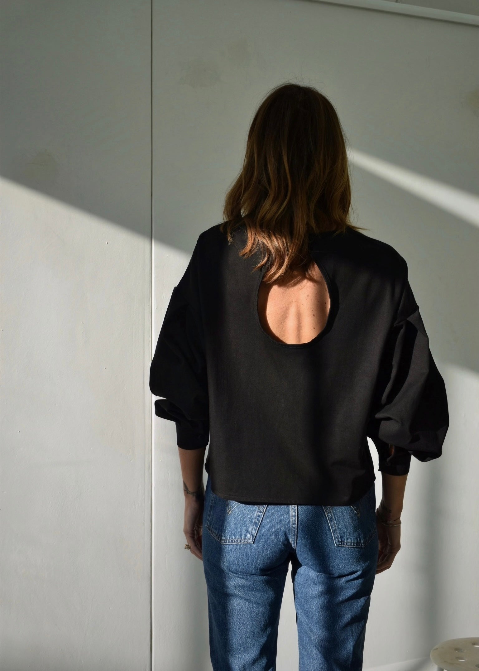 La blouse Lysée joue sur les contrastes : un volume moderne aux manches bouffantes et un dos ouvert subtilement rond qui dévoile juste ce qu’il faut. Une pièce forte et féminine, facile à porter au quotidien avec un jean comme avec une jupe plus habillée.
