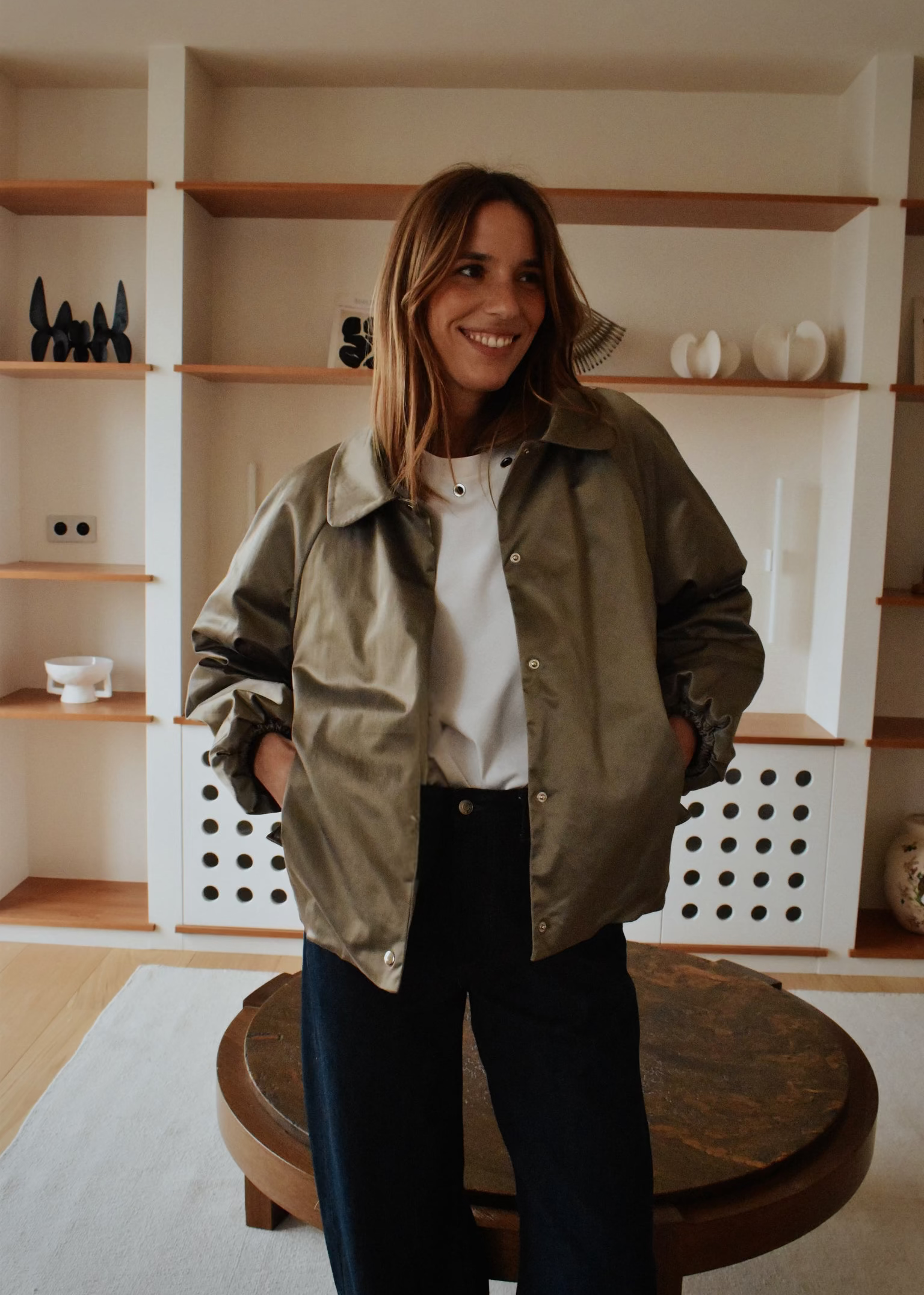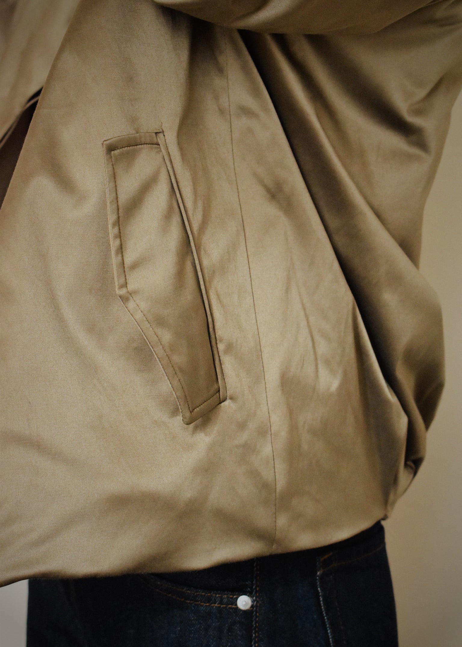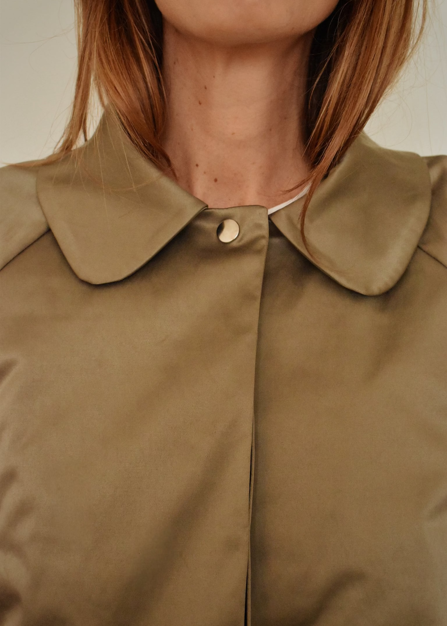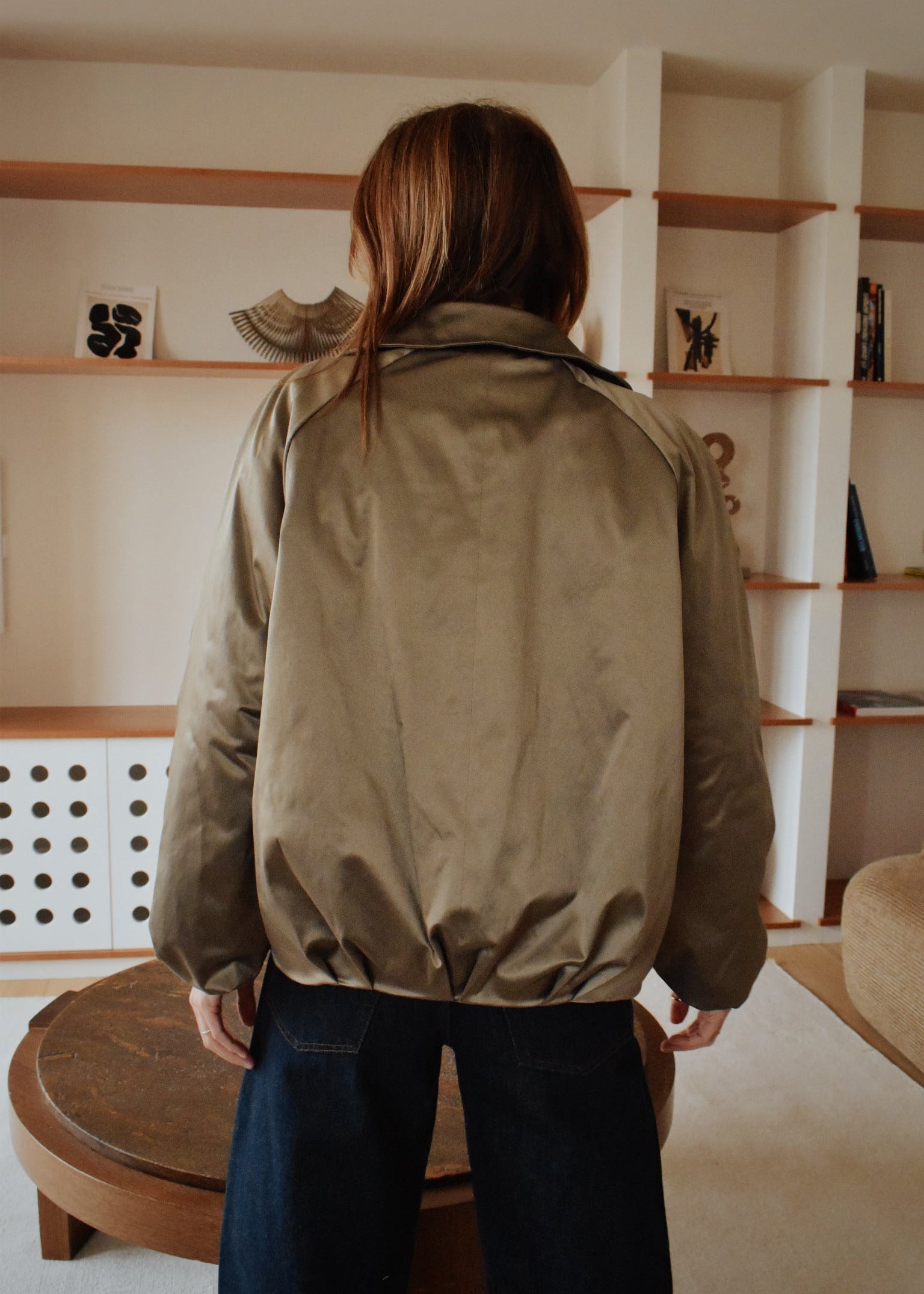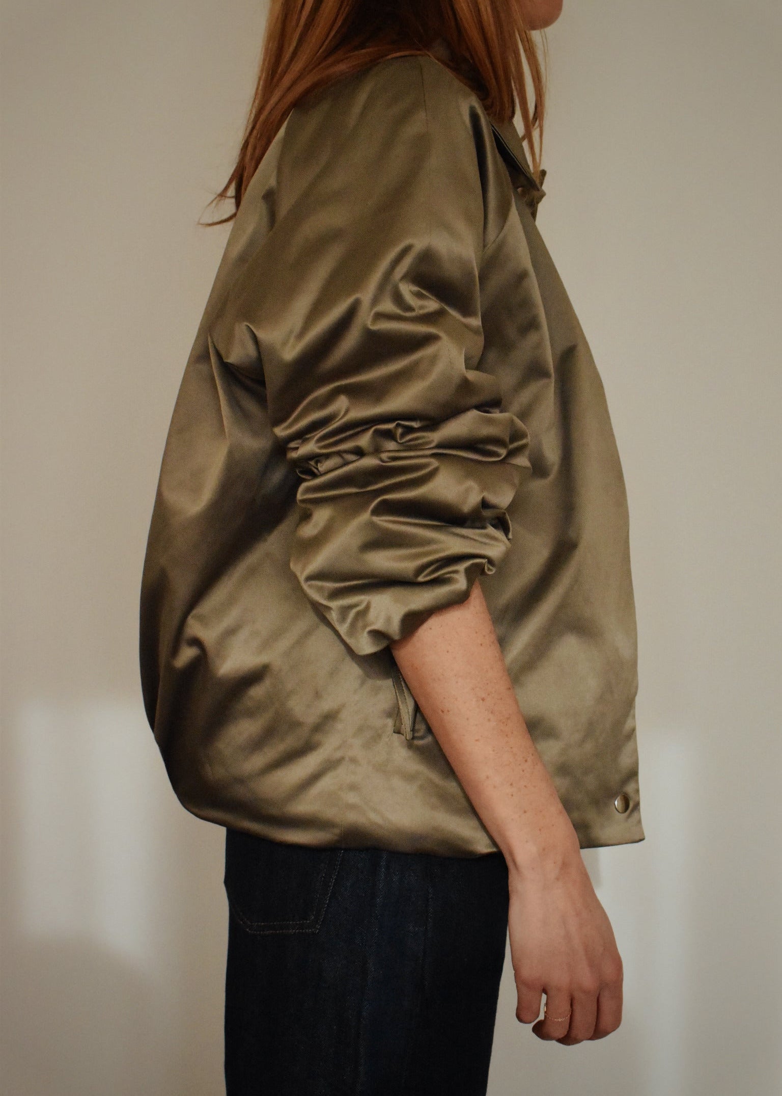 Le bomber Régine allie douceur et caractère. Sa matière satinée mat capte subtilement la lumière tandis que sa coupe légèrement ample offre une silhouette naturelle et élégante.