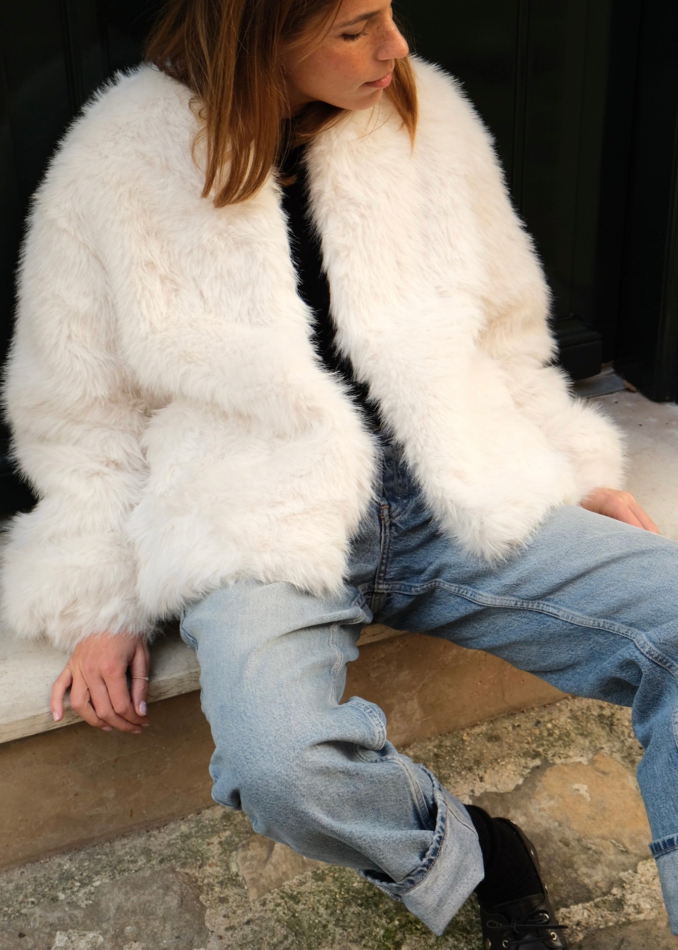 Sa fausse fourrure douce et moelleuse apporte une touche rétro-chic à toutes vos tenues.