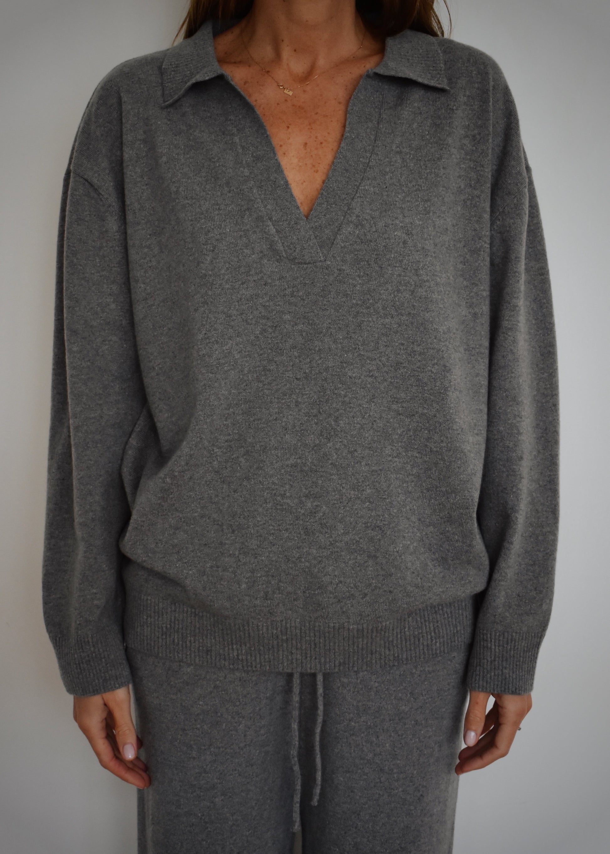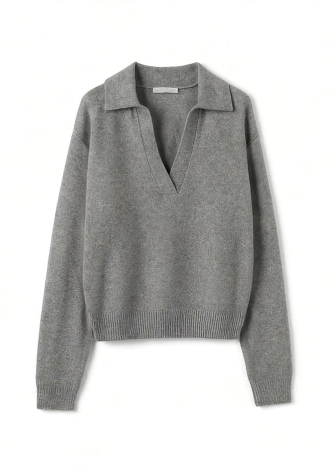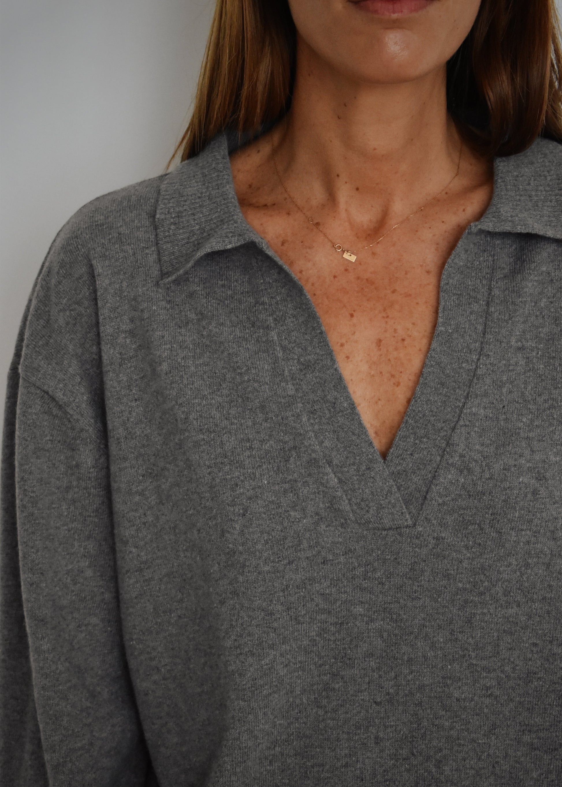 Coupe droite et oversize, col polo ouvert sans boutons pour une allure naturelle et décontractée.
