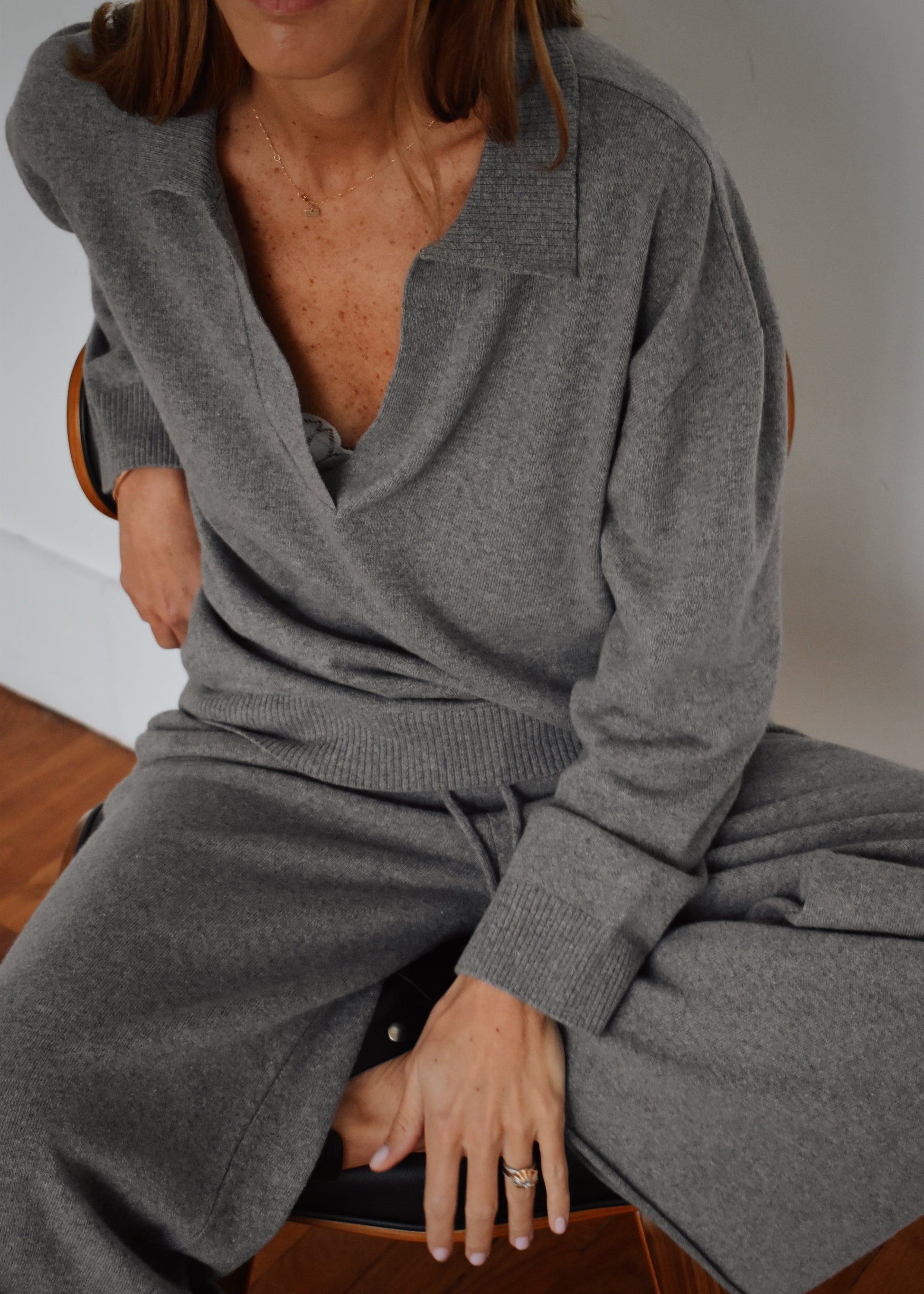 Maille en laine et cachemire Gigi Gardy, modèle SUZANNE, coloris gris chiné.