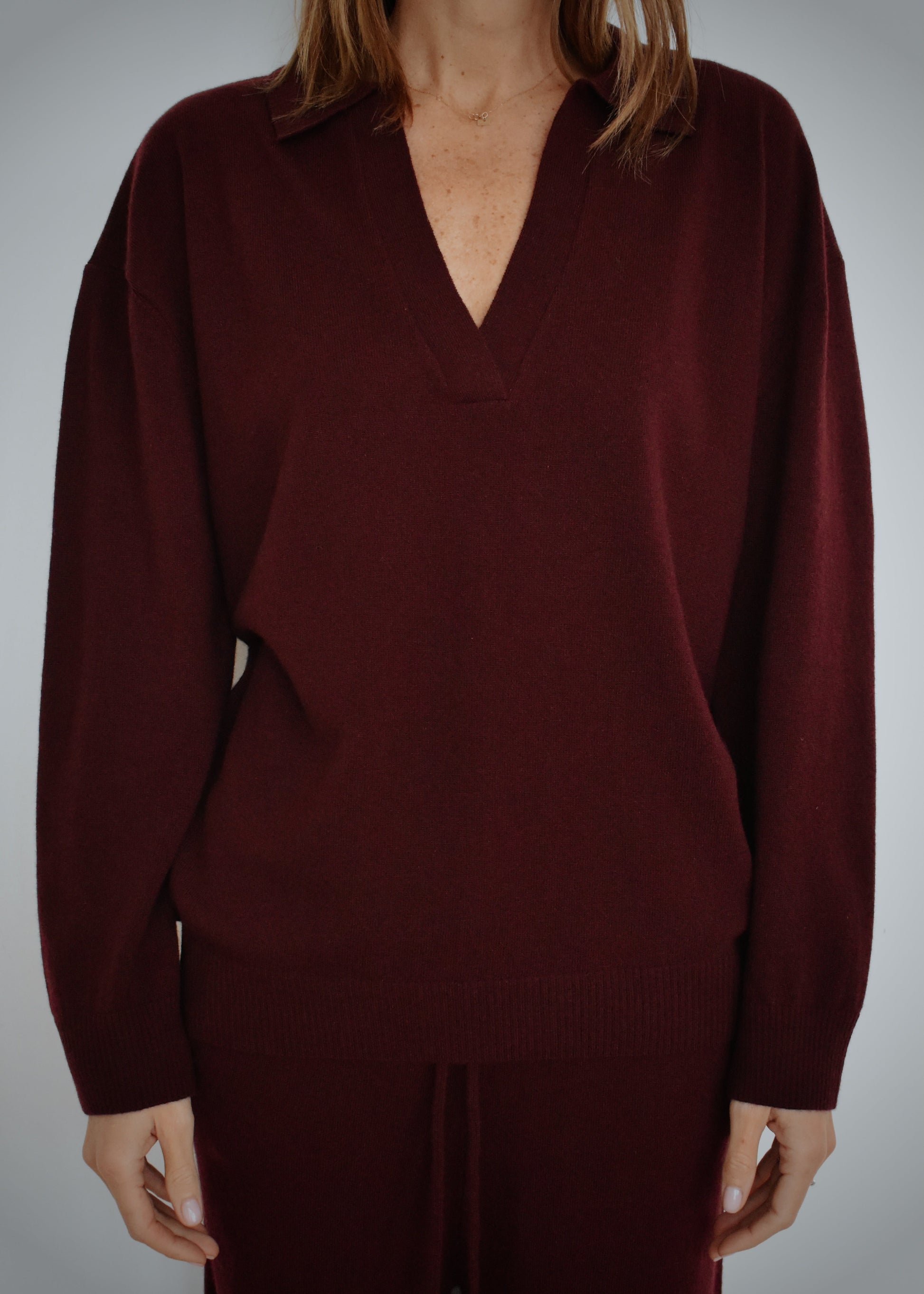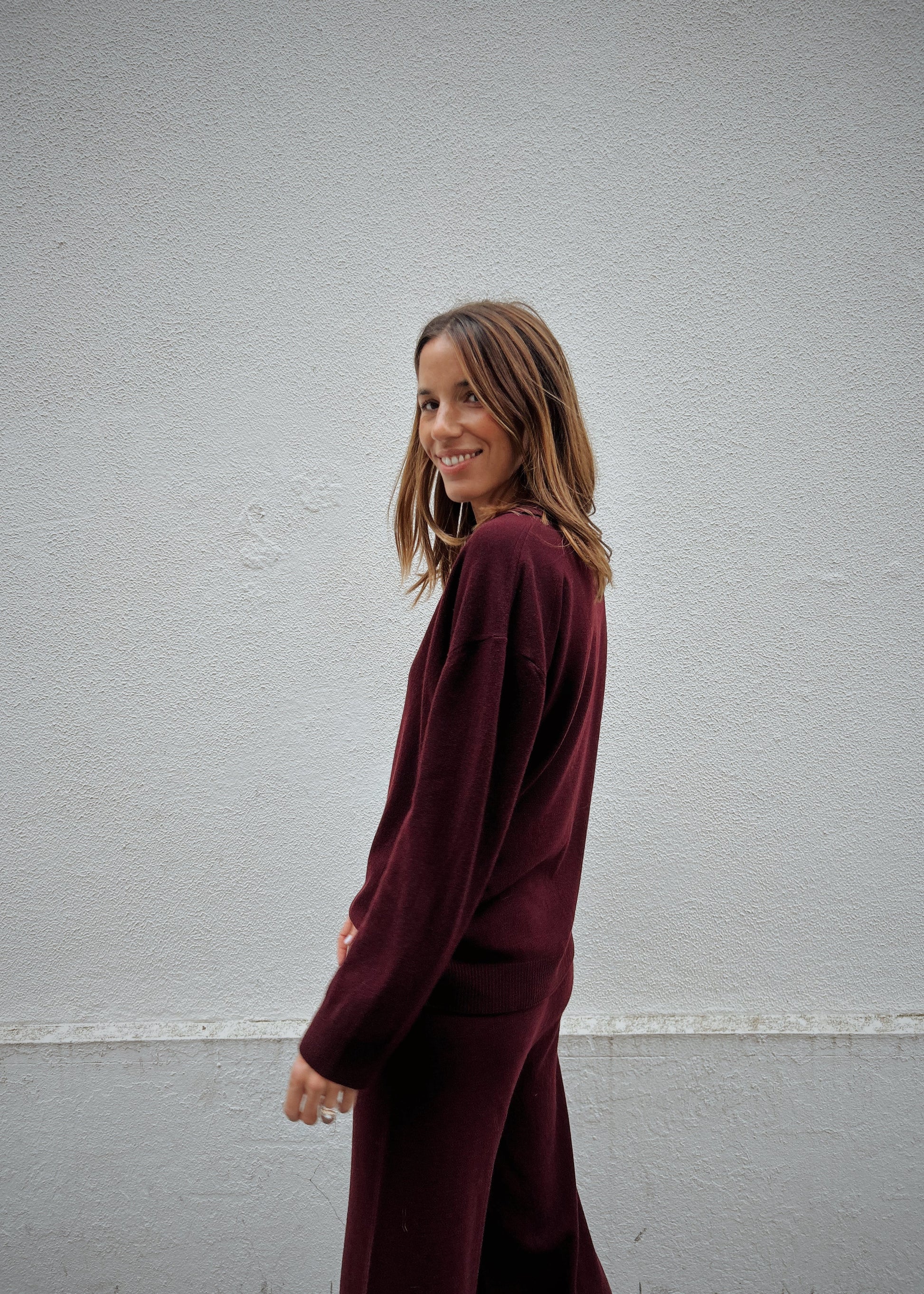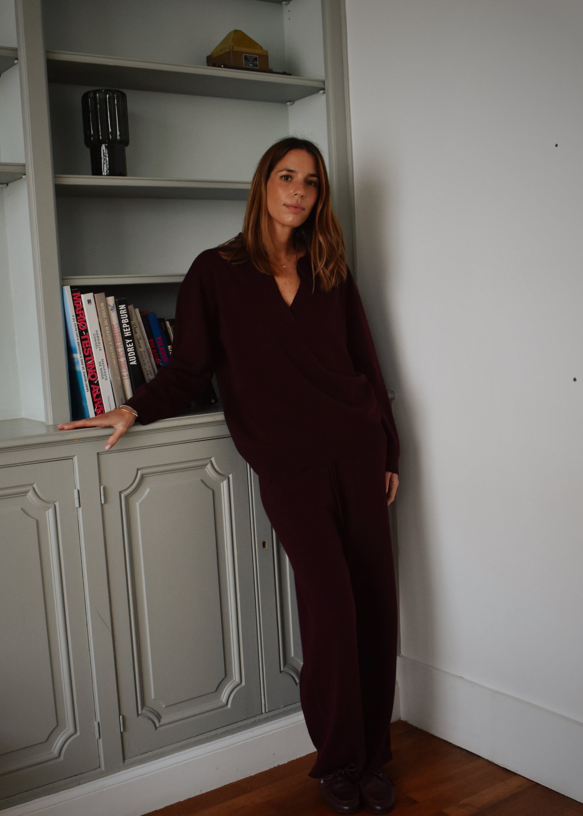 Maille en laine et cachemire Gigi Gardy, modèle SUZANNE, coloris bordeaux foncé.