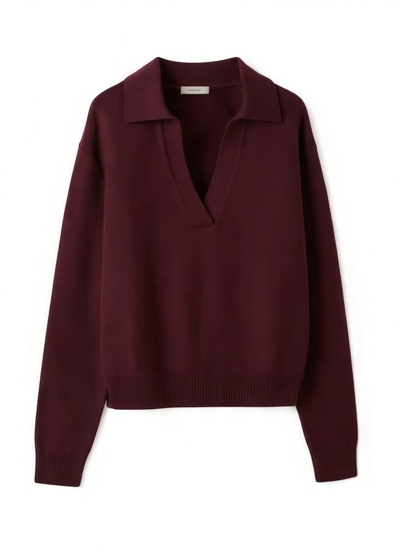 Coupe droite et oversize, col polo ouvert sans boutons pour une allure féminine et affirmée.