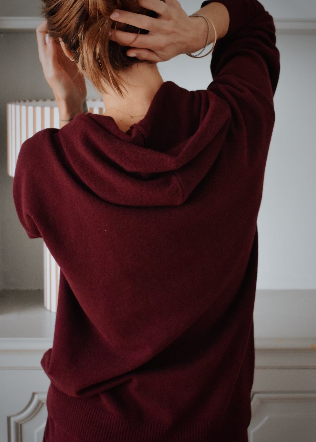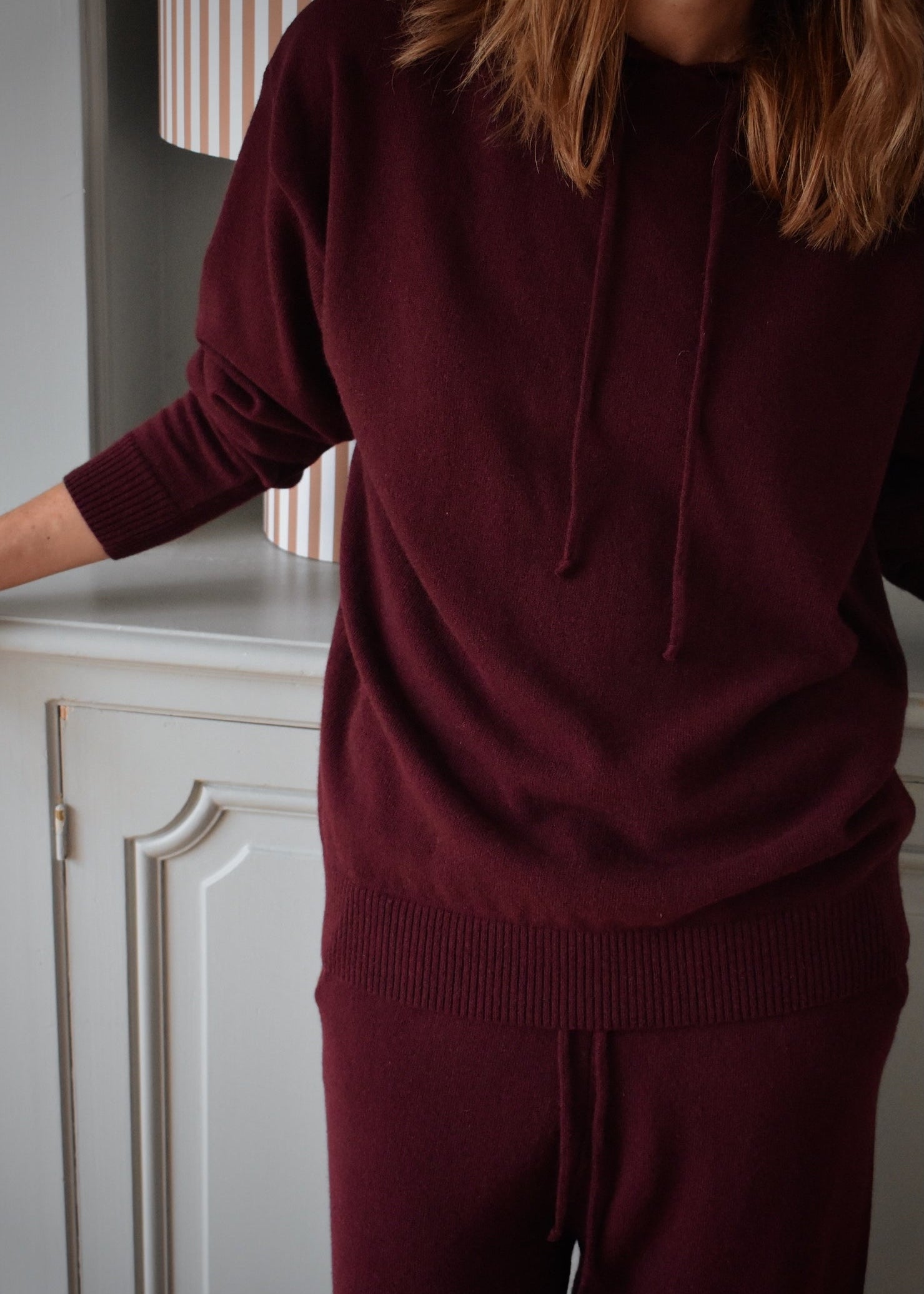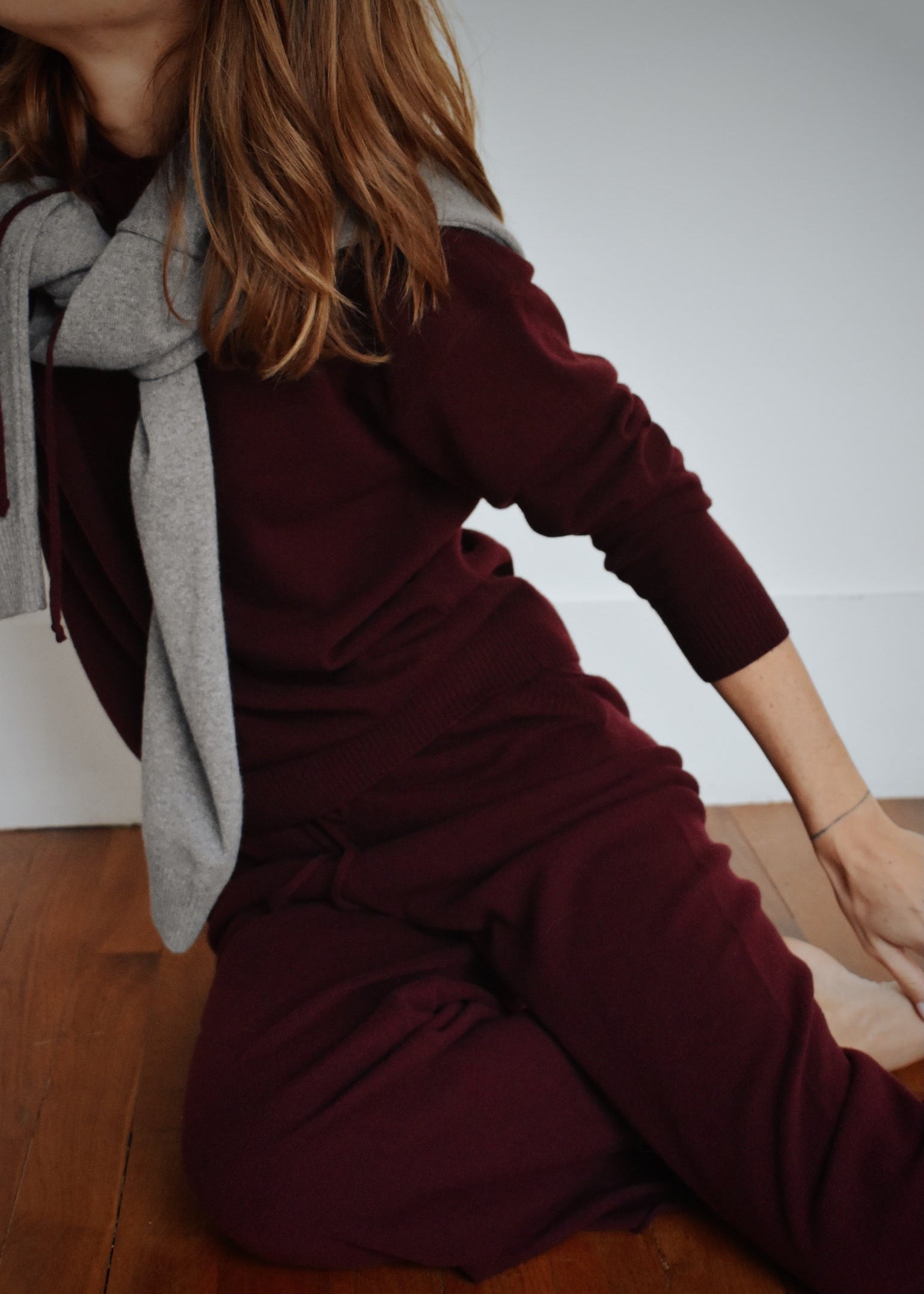 Maille en laine et cachemire Ginette Garde, modèle CHARLIE, coloris bordeaux foncé