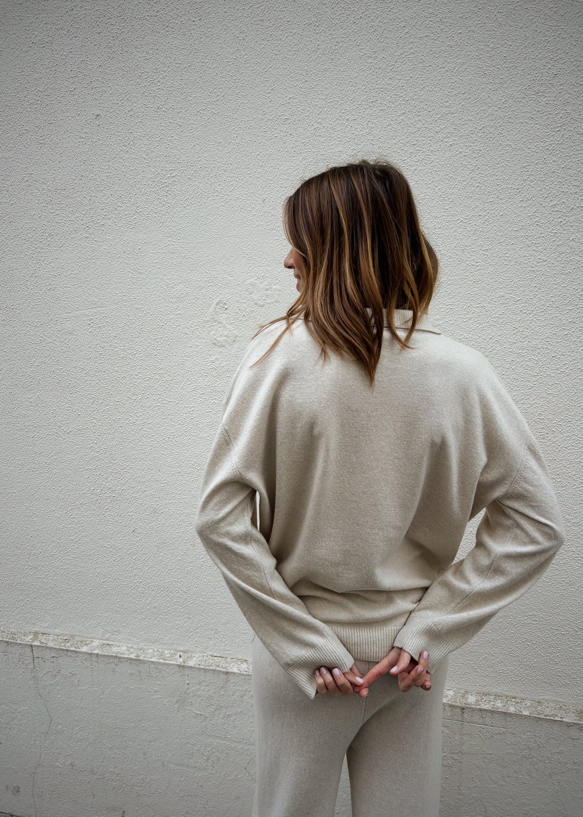 Maille en laine et cachemire Ginette Garde, modèle SUZANNE, coloris écru/chiné.